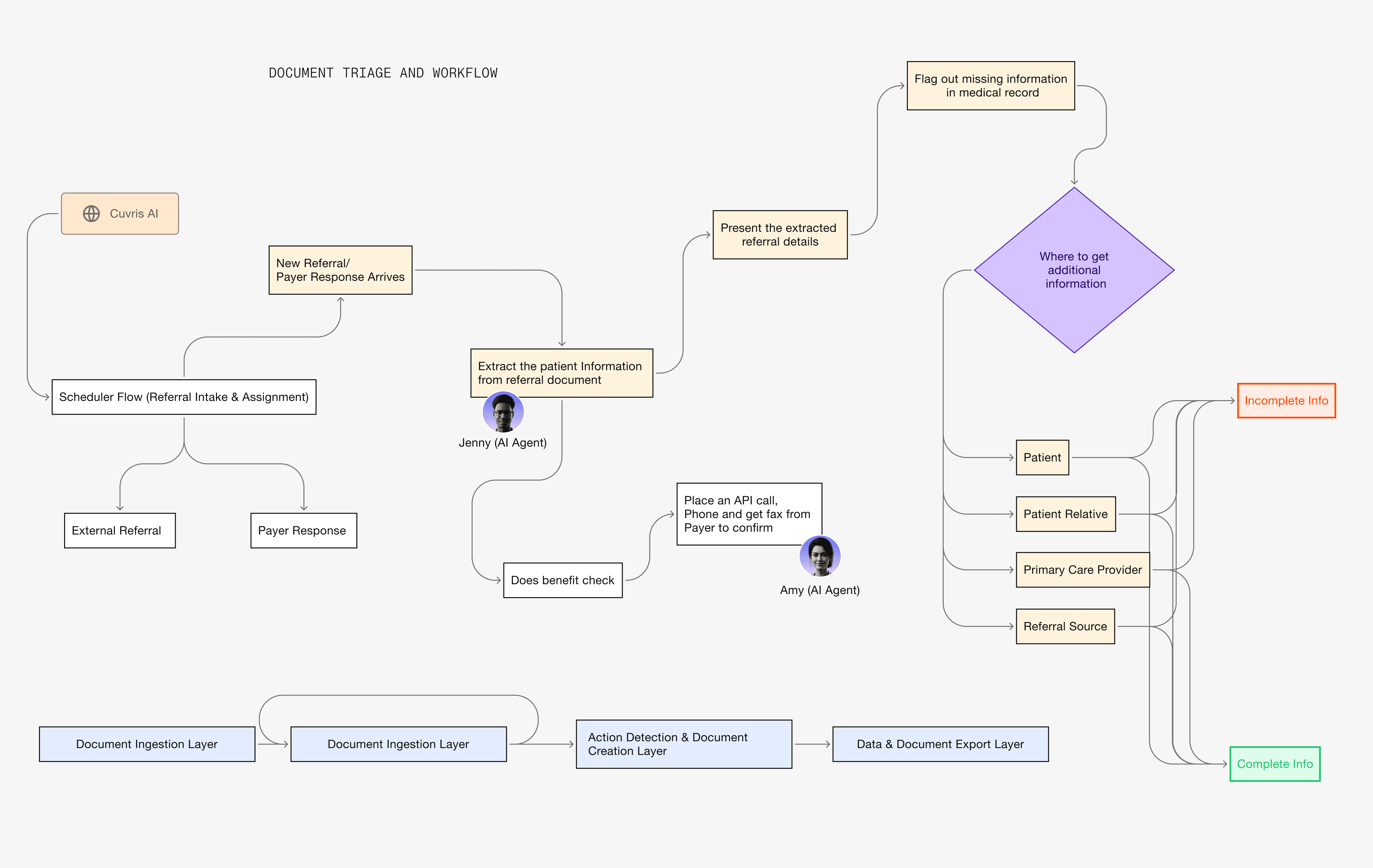 Cuvris piloted an AI-driven document triage solution to automate fax intake, classification, and integration into hospital systems, reducing manual effort and improving speed and accuracy.